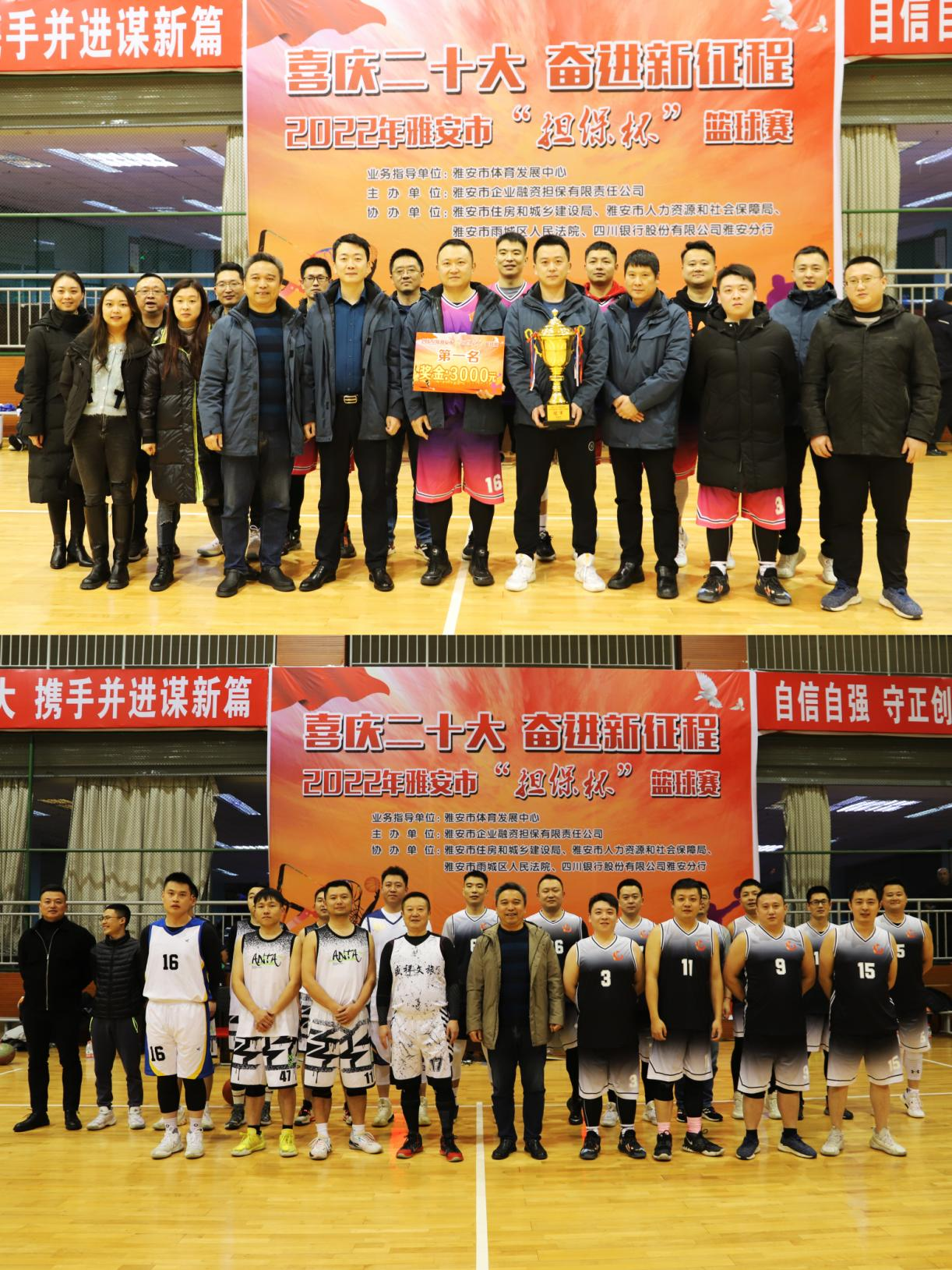 為深入學習貫徹黨的二十大精神,進一步增強干部職工的凝聚力和拼搏精神,豐富職工的精神文化生活,11月28日至12月7日,市擔保公司以黨建共建為紐帶,以“喜慶黨的二十大,攜手并進謀新篇”為主題,舉辦了2022年雅安市“擔保杯”籃球賽。