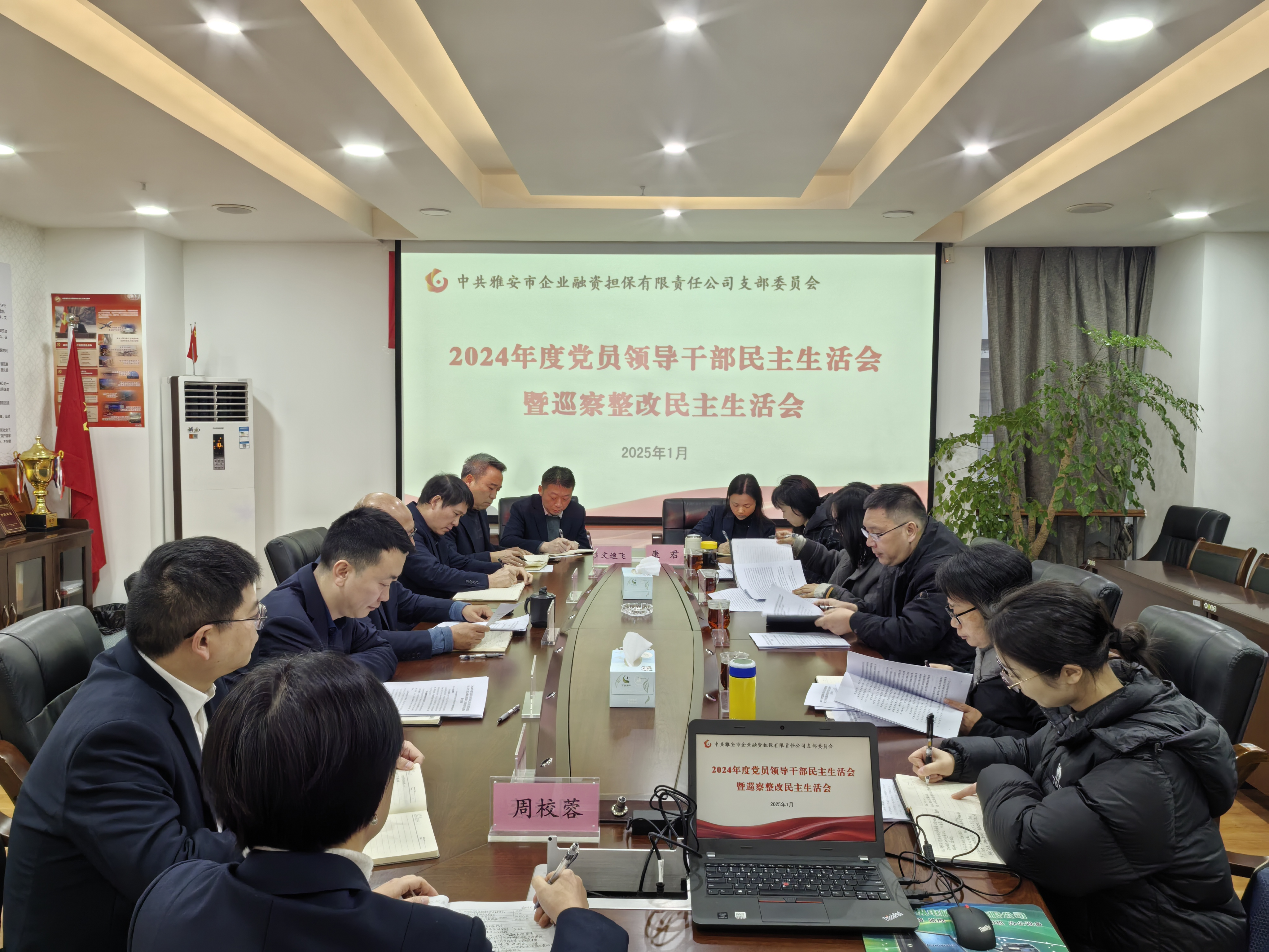 1月24日,市擔(dān)保公司黨支部召開2024年度黨員領(lǐng)導(dǎo)干部民主生活會暨巡察整改民主生活會。市財政局黨組成員、副局長張小春、駐市財政局紀(jì)檢監(jiān)察組組長、市財政局黨組成員曾文碧以及市紀(jì)委監(jiān)委機關(guān)、市財政局相關(guān)同志到會指導(dǎo)并點評。會議由市擔(dān)保公司黨支部書記、董事長尹福健主持。